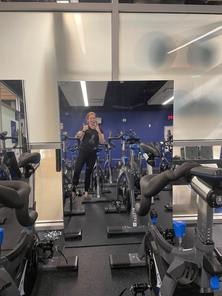 Friday: I didn’t wake up early like I’d hoped and had some mid-day commitments, so I went later in the evening for a 10 mile recovery ride in the cycling studio and a quick core workout before heading home. I usually try to watch something during indoor rides to make the time pass more quickly. Today that was season 2 of Cheer, which I finished later that night– so good.