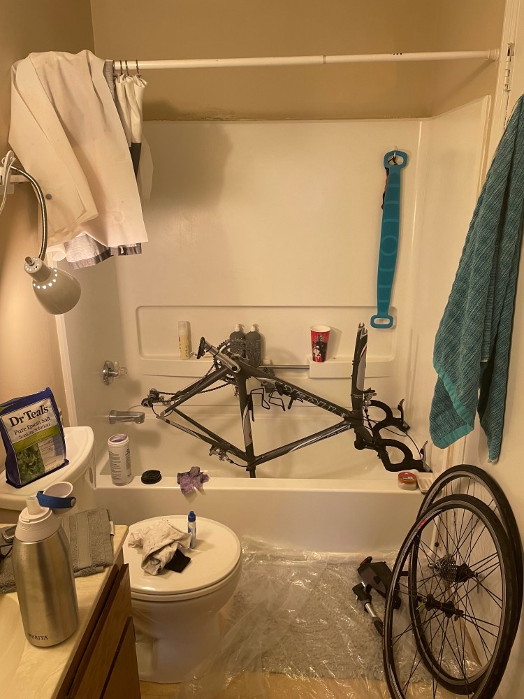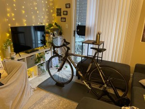 Monday: Ultra lazy day. We got more snow so I decided to do my 1.5 hr/20 mi easy ride at home using my trainer. Trainer rides are 10000% harder than outdoor rides and even worse than stationary bike rides because it’s harder to get as much variation in the resistance to simulate hills (at least with my set-up, which includes a “dumb” trainer. There are very pricey smart trainers that can adjust resistance and simulate terrain). I put off riding because I needed to clean my bike, which is a workout in and of itself in my tiny apartment. I finally got myself on the bike but split the ride into thirds with lengthy breaks in between to distract myself from the fact that I was spending an hour on my bike going nowhere.