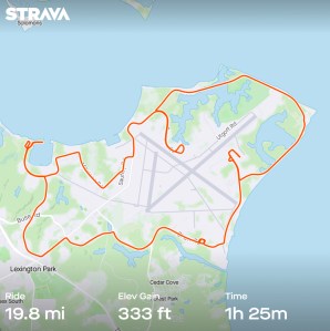 Saturday: Thanks to my dad and Beth, I actually got out and did 20 miles in the cold. Well, almost 20 miles– between the four activity trackers we had we got four different distance totals and mine came up a bit short. It was sunny and nice to ride down on the base again, but the wind down by the water was chilly!