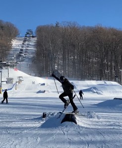 I am a pretty good skier and felt like could maybe handle a small feature in the terrain park (in hindsight, a severe misjudgment), and Julia was recording in the event that I actually managed to hit it. Instead, I wiped out HARD and we spent probably an hour laughing at the video (I’m not going to post it here but you can click through the disastrous progression below). The worst part was that I very rarely fall when skiing and don’t really know how to get up anymore, so trying to get up was probably more embarrassing than the fall itself. I fell over again trying to get my ski back on!