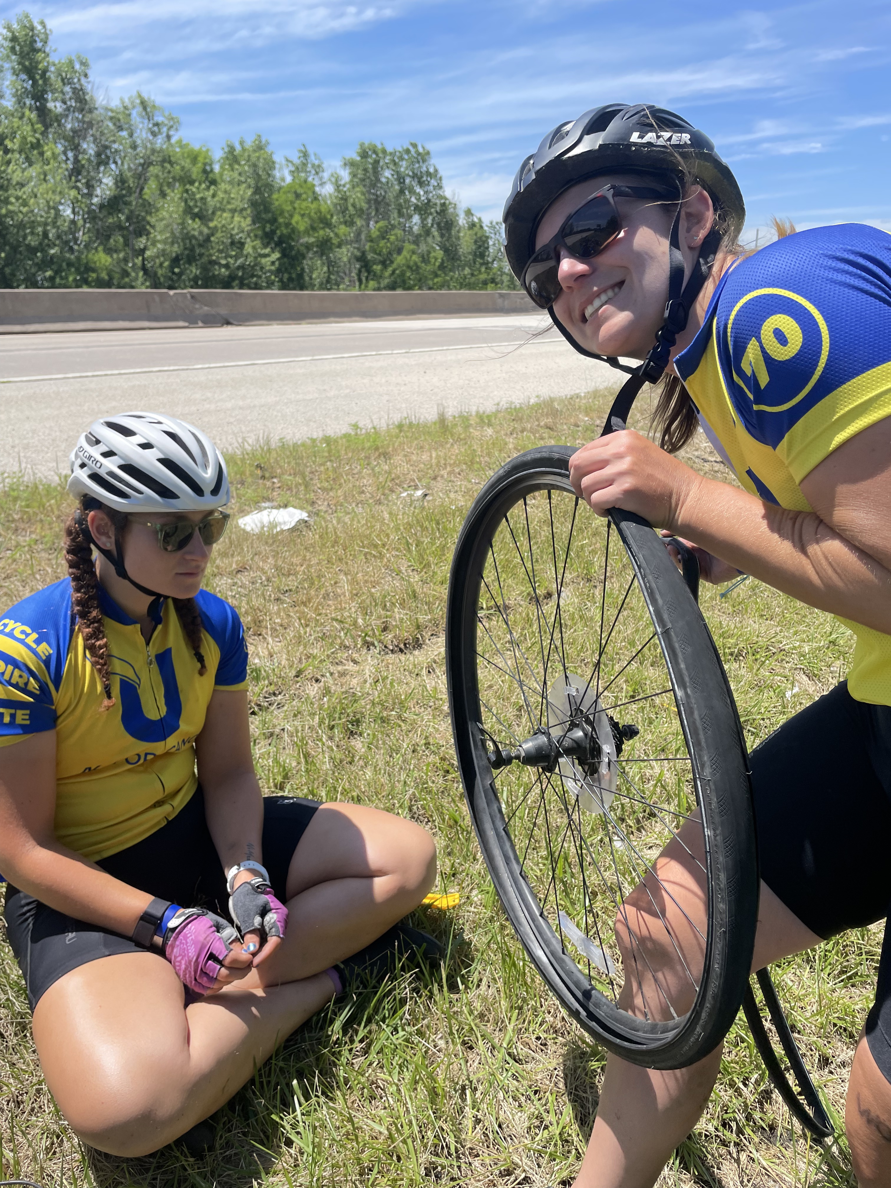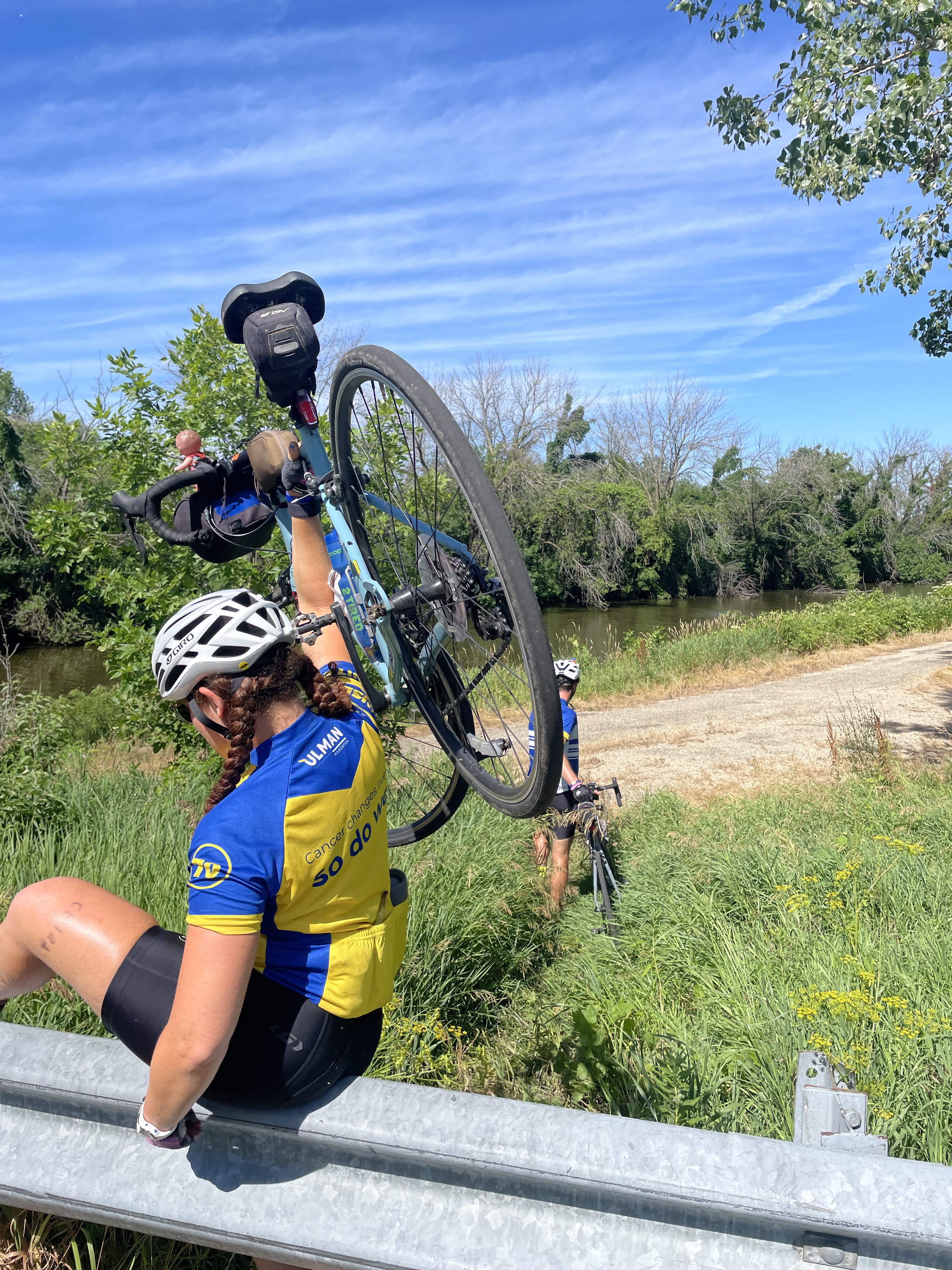 1. That’s pretty good mileage for the first flat! 164 miles! That’s crazy but good job working around it and doing what you needed to do to stay safe. The Mississippi crossing looked amazing . Great job to you and your teammates.