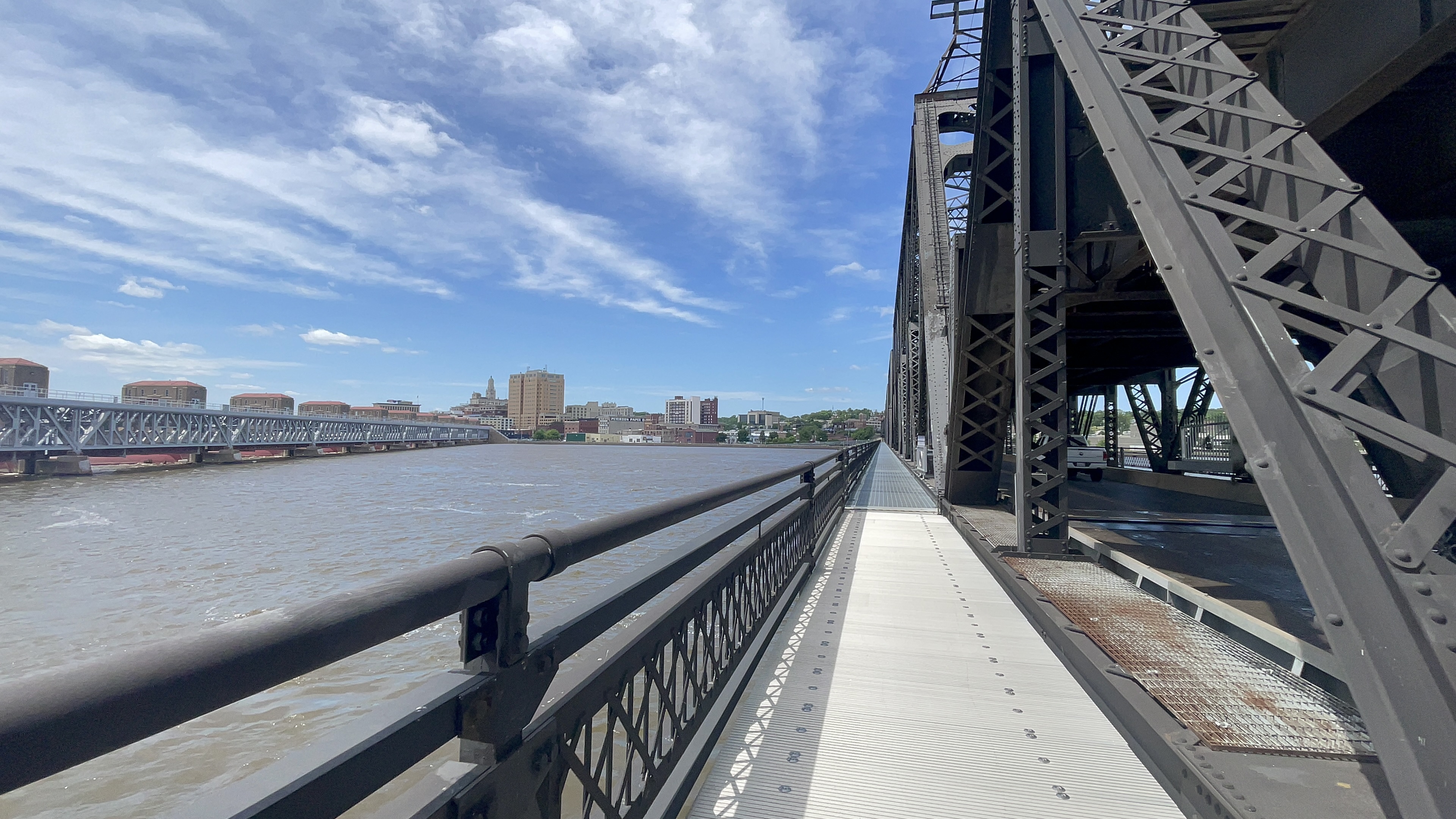 After 45 miles of that, we got onto some paved roads and trails approaching Davenport, IA. The road conditions improved but we were then facing a brutal headwind for most of the day. It was a cool day, though! We crossed the Mississippi River (twice?) and crossed into Iowa about halfway through the ride. We were on a very beautiful trail along the river for while but it was hard to appreciate because the wind was straight up abusing us at that point.