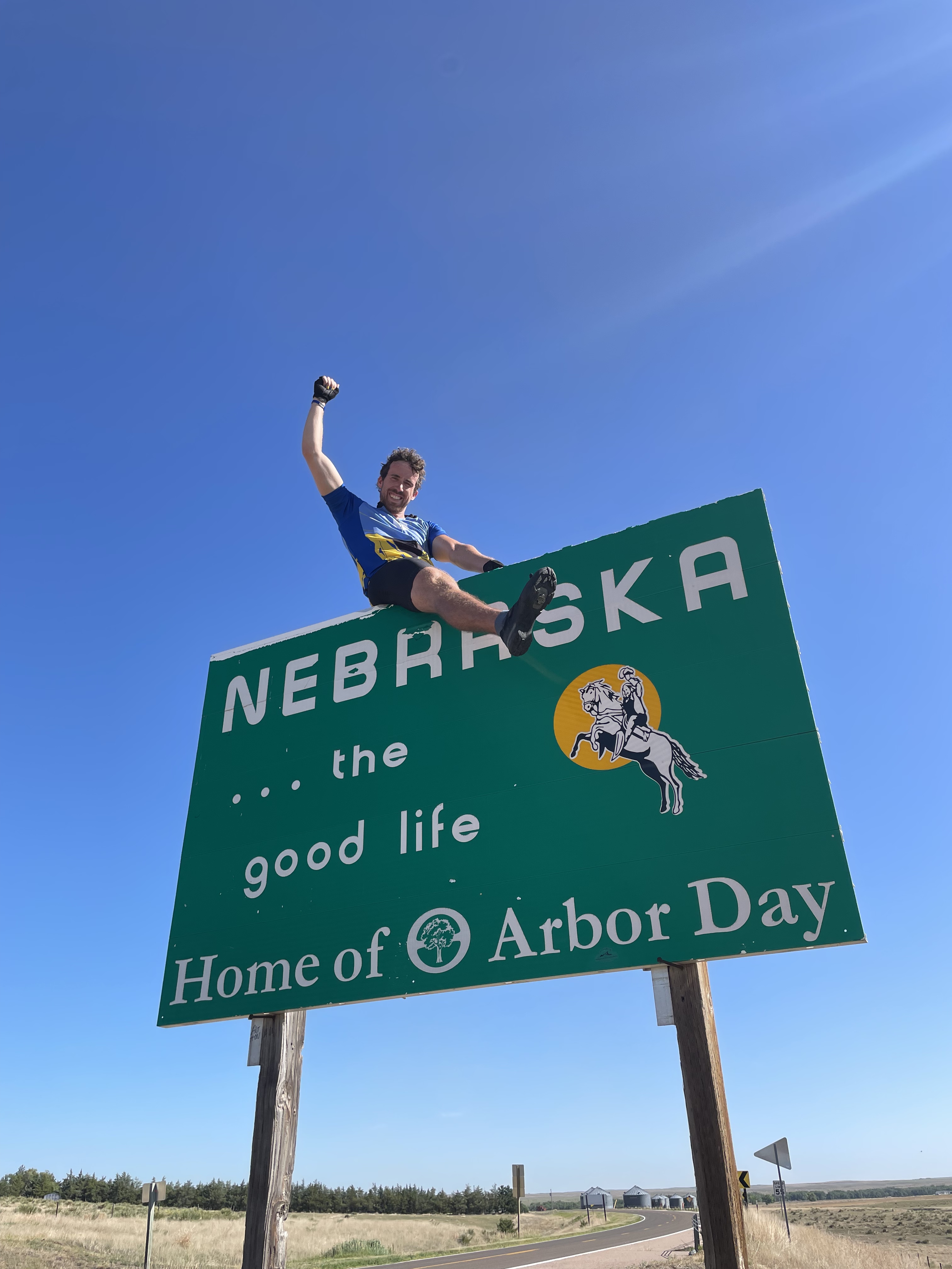 We came very close to the Kansas border right before our first water stop so my group decided to detour so we could get pictures with the Kansas and Nebraska state signs. Getting there was almost a mile uphill, but we got some good pictures and had a nice cruise back down to our route!