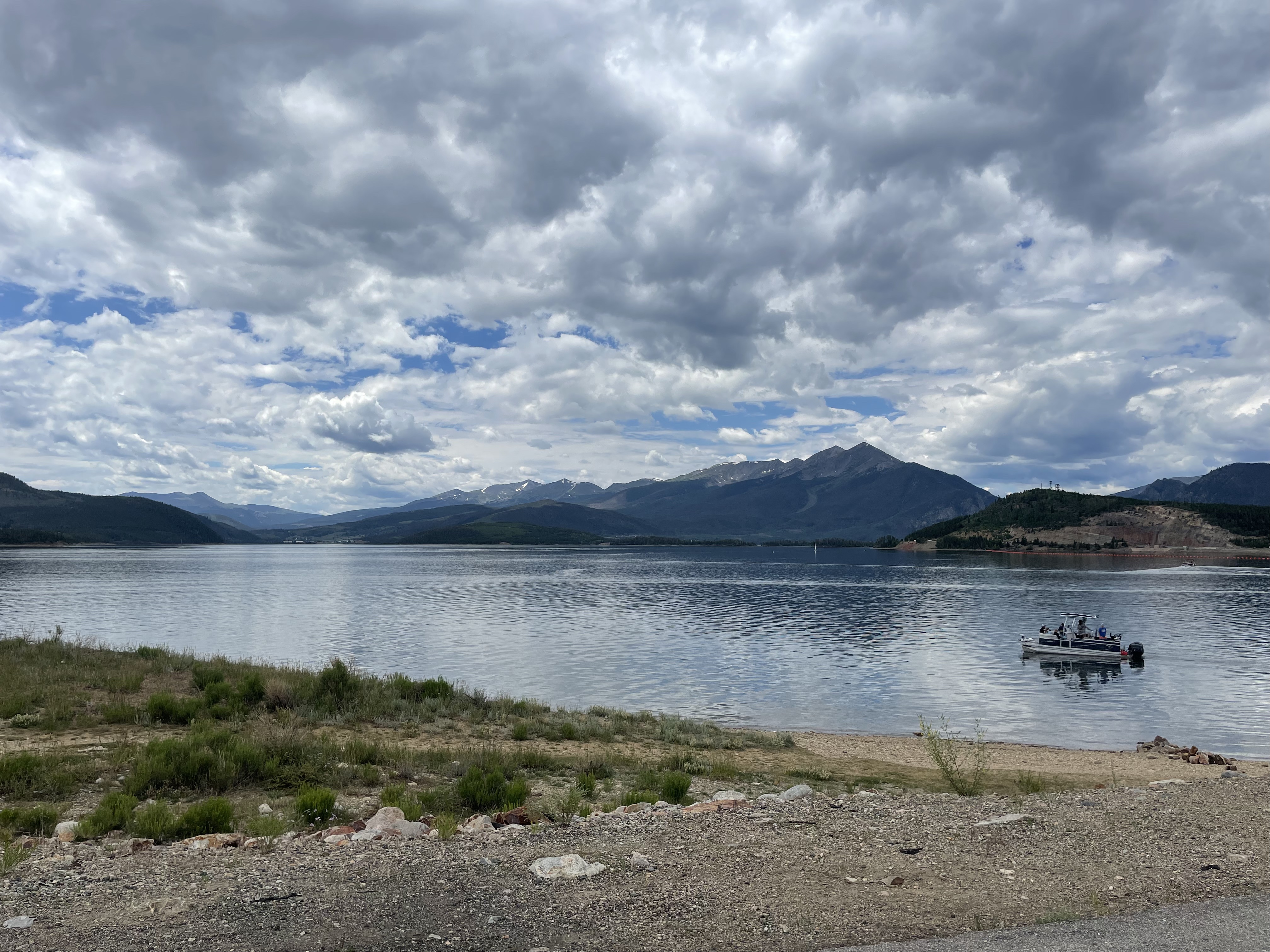 We had quite a few short climbs before the water stop and most of the next 20 miles were downhill or flat. You may be wondering why Rose and I didn’t group up with another pair until we reached the climb… we were given the option to ride with some of the guys and chose solitude haha. We got off the highway entering Silverthorne and were on a path for most of the rest of the ride. The trail was generally nice, a little bumpy at times, but followed the river for a while and then snaked up above the city and crossed a dam. Only in Colorado are there recreational bike paths with switchbacks! We had a second water stop there, where Santi took a chilly swim to try out his new triathlon suit.