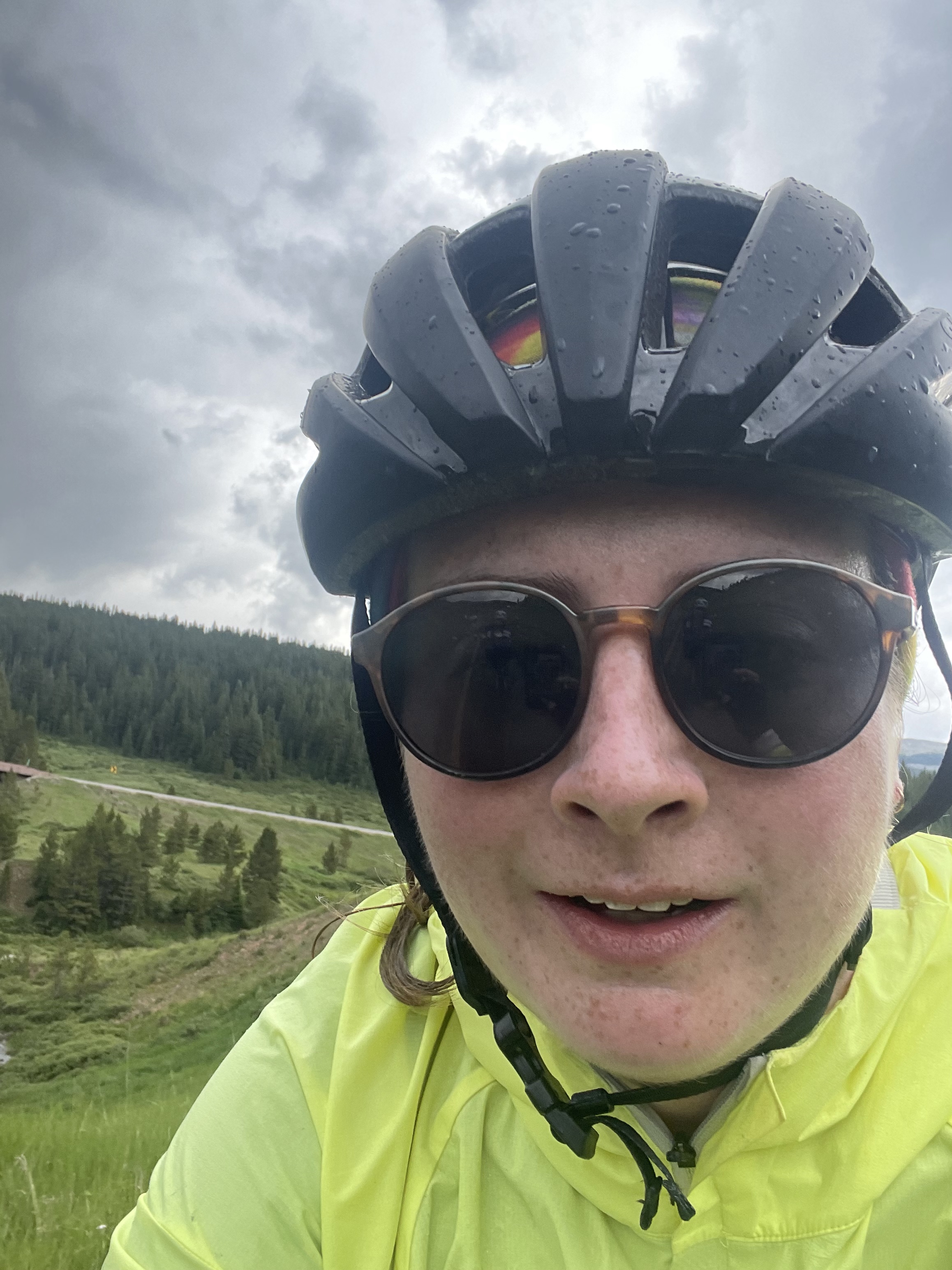 The rest of the ride into Vail was a nice wide-open descent, mostly on the trail. It felt so good to coast after so much climbing the past two days! It did start to rain again on and off, and it really started to pour just as we had gotten through Vail. Lunch was on our own today and we somehow failed to realize where the main area of Vail was and blew right past it, so we ended up eating in West Vail. It was perfect timing because it started to downpour as soon as we got off our route to head toward food. We took shelter in a McDonalds, ate way too much food, and hit the road to cover the last few miles to the host.