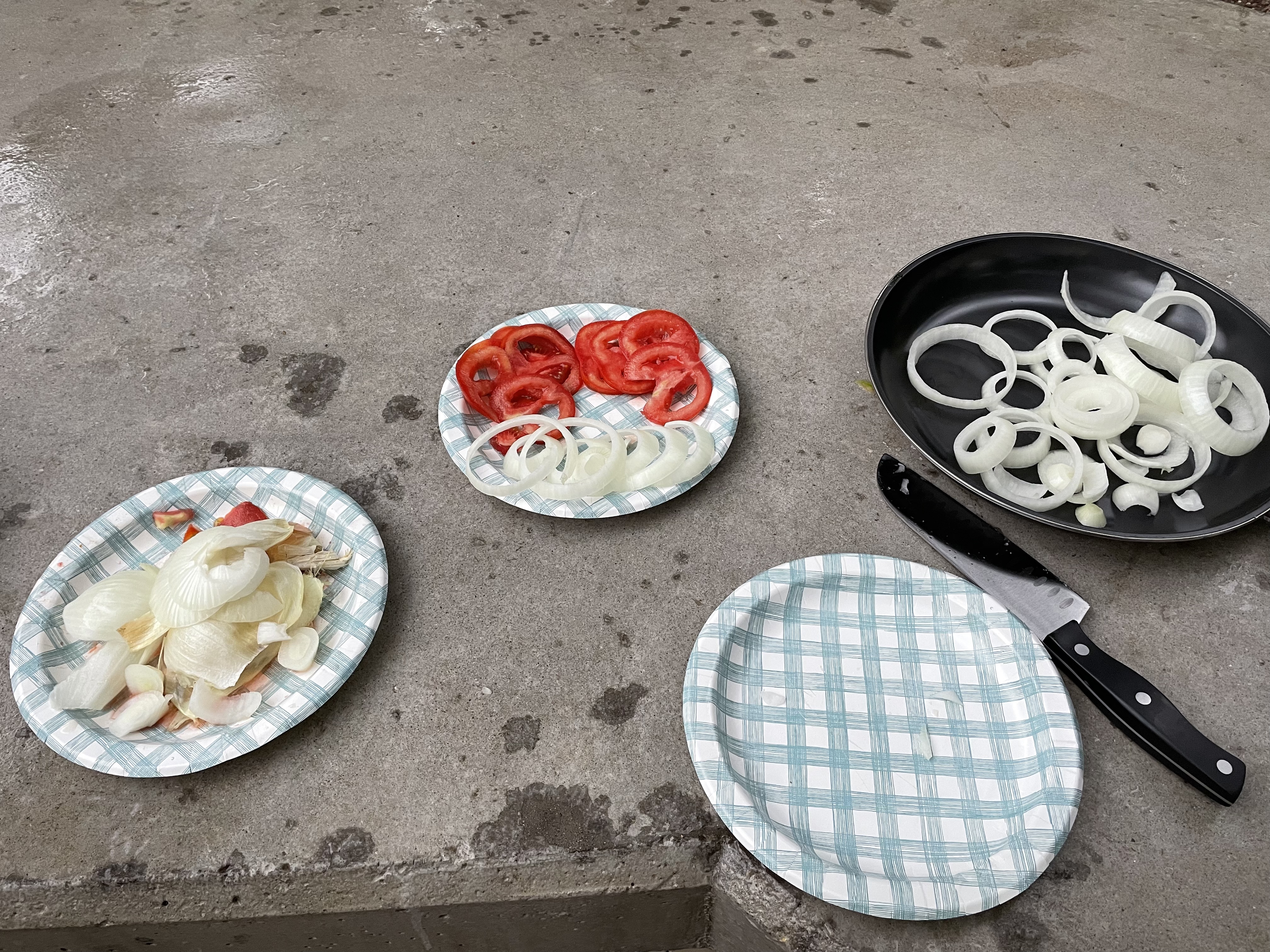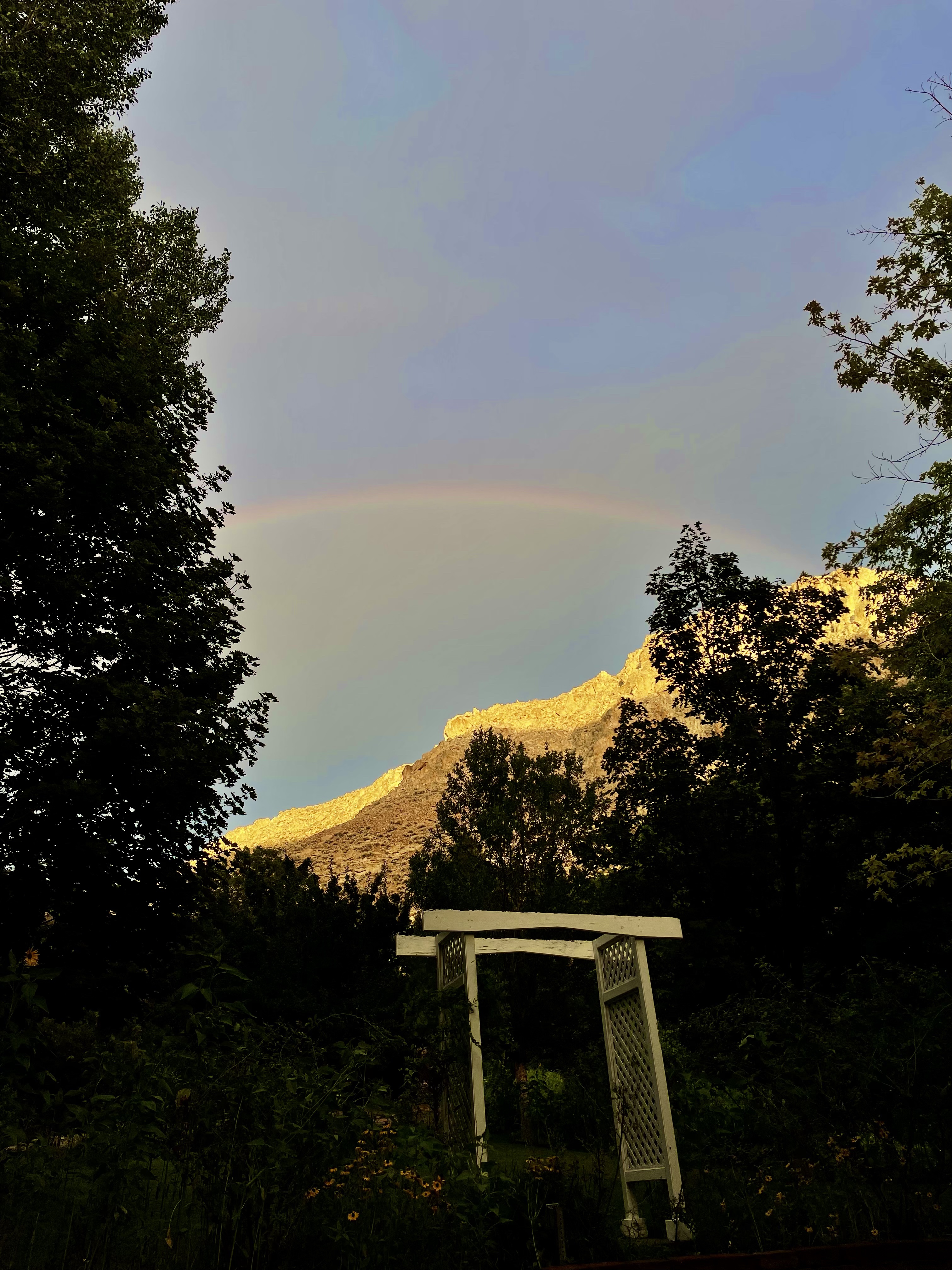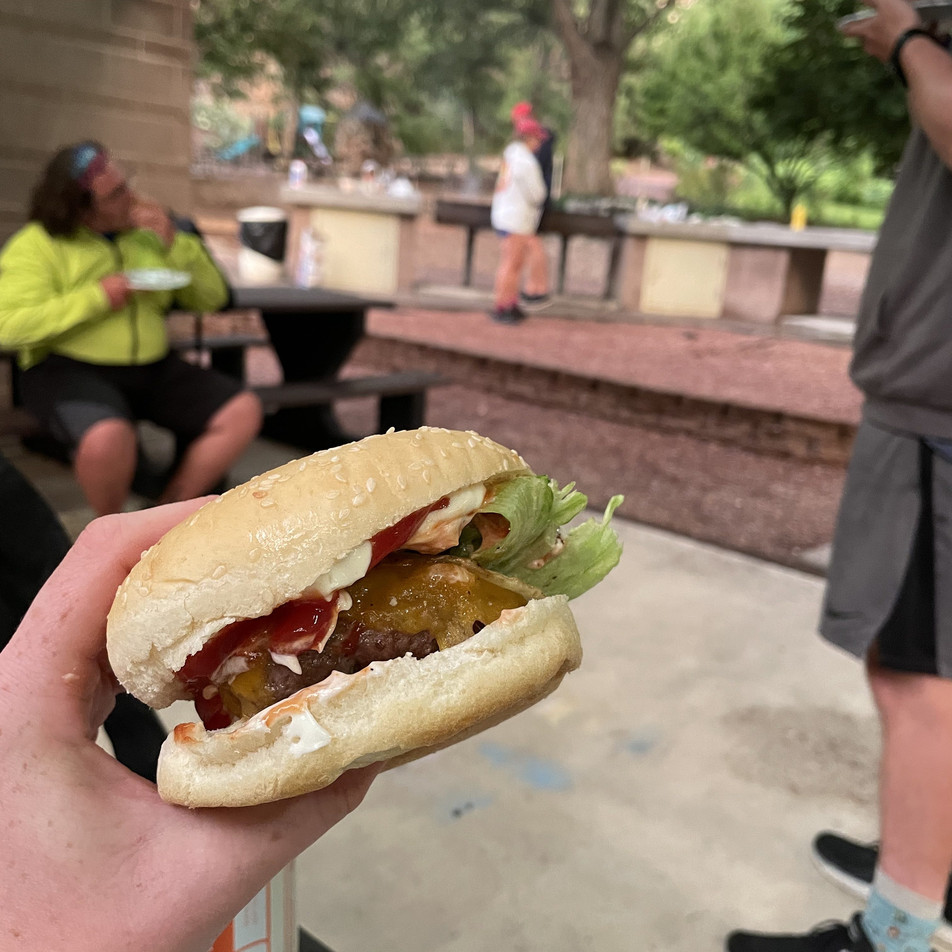 After picking up some stickers at the visitor’s center we headed back to Caliente, stopping at some local markets for dinner donations. We had surprisingly good luck and got enough gift cards to secure dinner for our small group tonight and breakfast items for the team tomorrow. It did start to storm again, much worse than yesterday, so at one point we were shopping by flashlight. My private suite unfortunately did get a little wet, but nothing too terrible. We waited out the rain under a pavilion and made hamburgers for dinner. The sun came out just in time to light up the ridges of the canyon like last night, this time with a faint but full rainbow above the canyon as well.