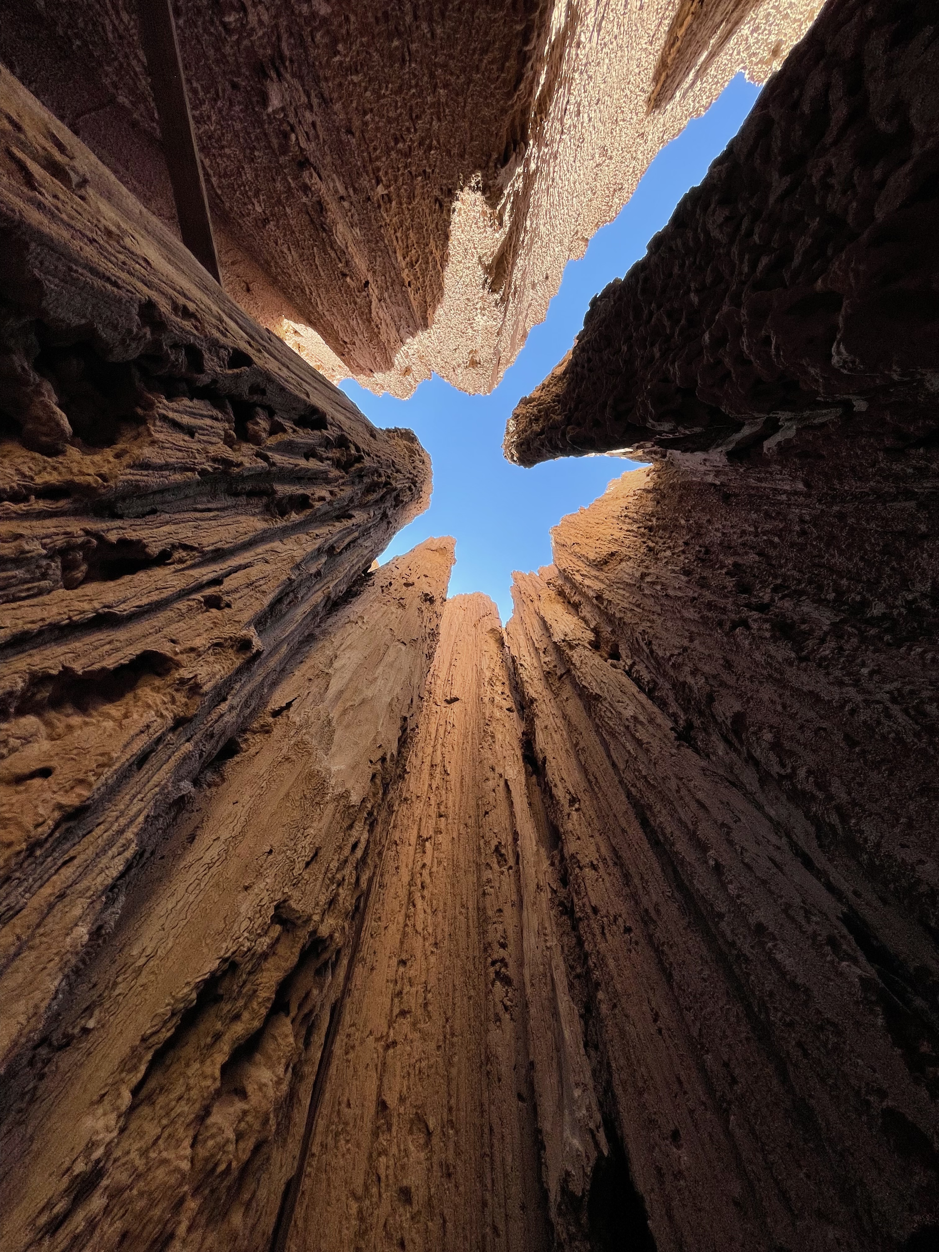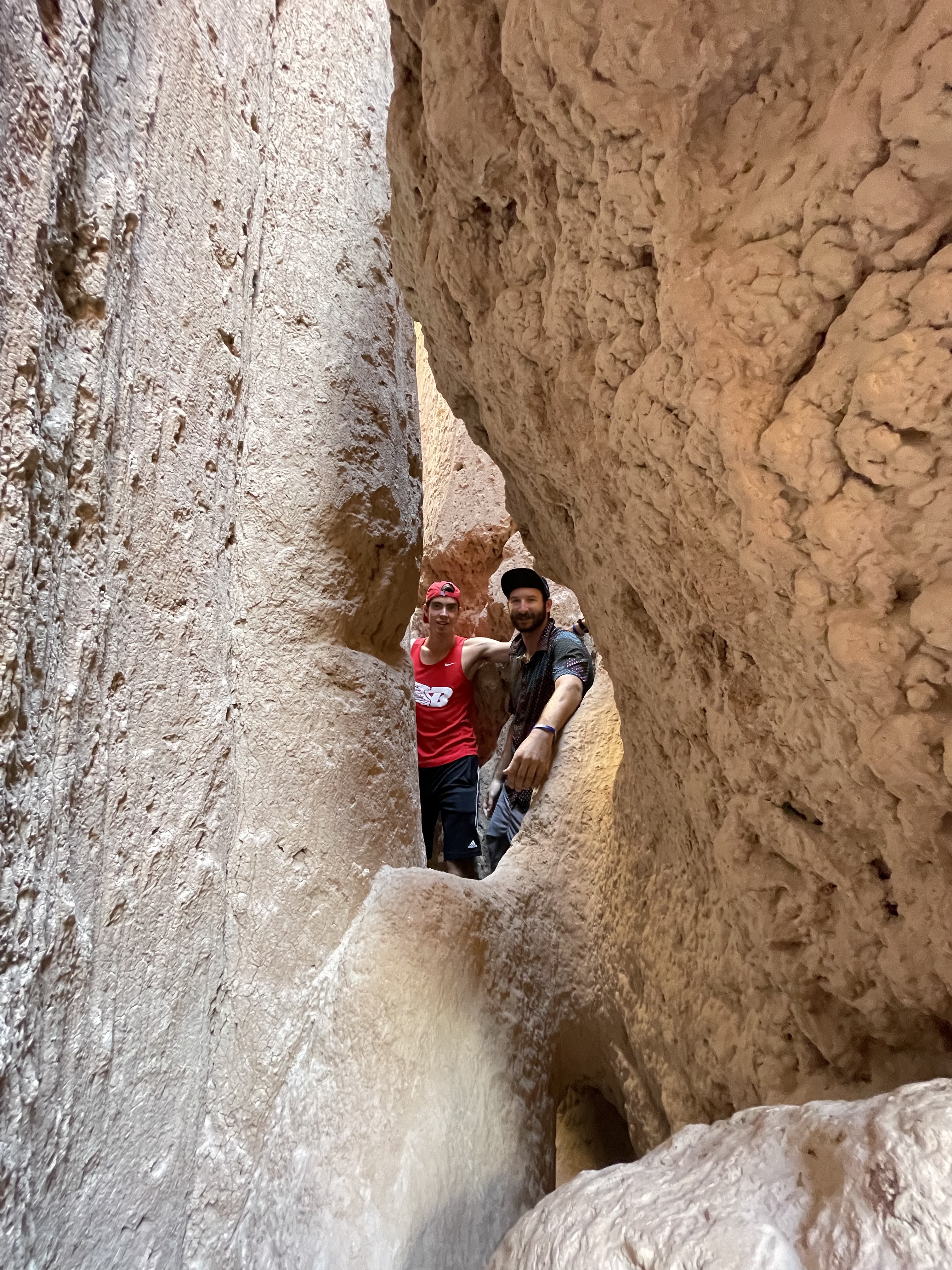 I then went out with James, Max, Bryce, and Leslie for lunch and a quick exploration of Cathedral Gorge State Park. I don’t know what I expected from the park but it exceeded all my expectations and was maybe the most beautiful thing I’ve seen on this trip. We explored some small, narrow slot canyons carved into the rocks. It was stunning to be deep in the rocks, shielded from the sun for the most part, and to look up to the sky above you. I hope these pictures do it justice! The pictures don’t capture how radically the temperature changed as you walked into the slots, though– you would never think it was late July with how cool the temperatures became as you walked further into the canyons.