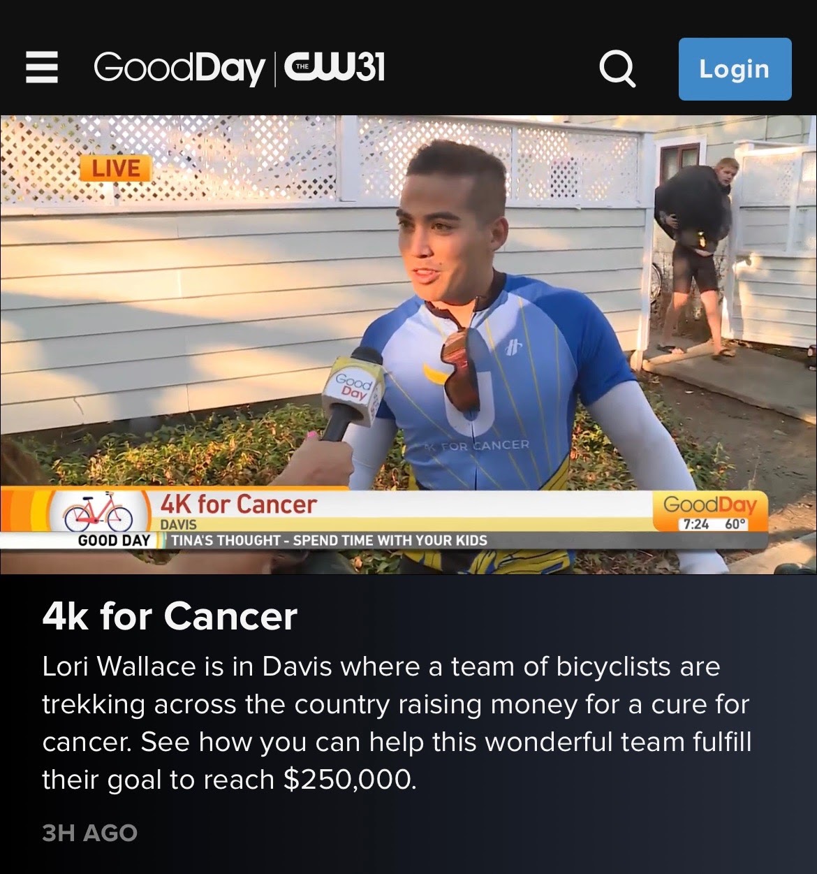 After that we were frantically packing and cleaning up to prepare for an interview Casey set up with Good Day Sacramento. The reporter showed up way earlier than we expected and then wanted a shot inside the fenced-in backyard of the frat house, which we did not think was a very good representation of us, so after some restaging we were seemingly all set– except for Casey, who ended up being late for his live interview and literally ran on-screen after the segment had started… :)