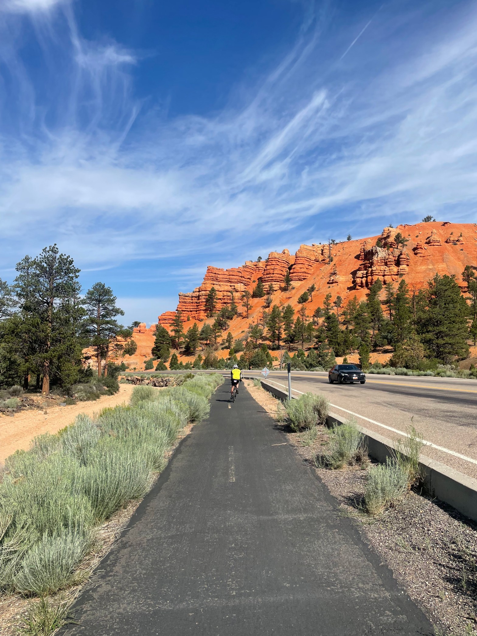 This morning wasn’t very efficient, between trying to pack and clean up a very disheveled Airbnb and then backtracking 18 miles that we covered two days ago. That beautiful descent we had getting into Orderville became a slow and tortuous climb out of Orderville. My group took the silent, slow, and steady approach, as ourContinue reading “Day 53: Orderville, UT to Cedar City, UT”